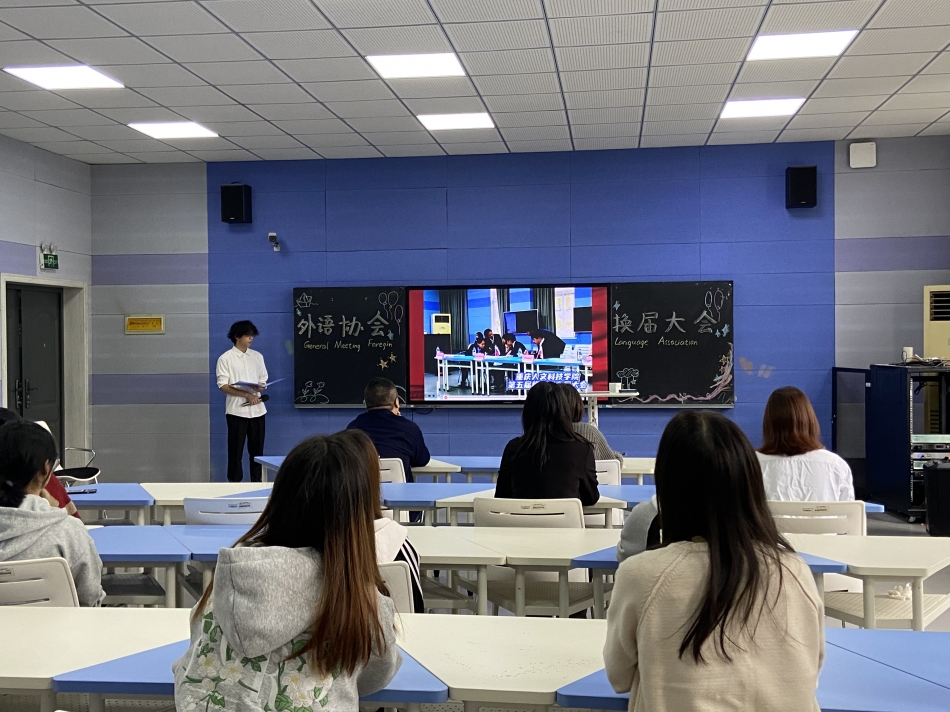 随后,大会通过一段视频回顾了过去一学年协会开展的活动成果,精品活动“模拟联合国大会(英文会场)”、品牌项目“英语沙龙”以及“21口语打卡活动”以光影的形式呈现在大家眼前。