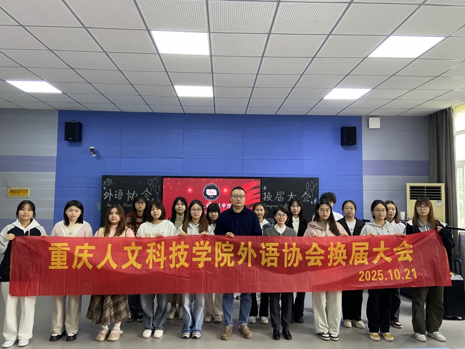 10月21日,2025-2026学年重庆人文科技学院外语协会2025-2026学年换届大会在宏识楼7407顺利举行。外语协会指导老师彭奕奕、冯清出席,上一届协会干部代表和本届协会干部以及20多名协会成员参加。