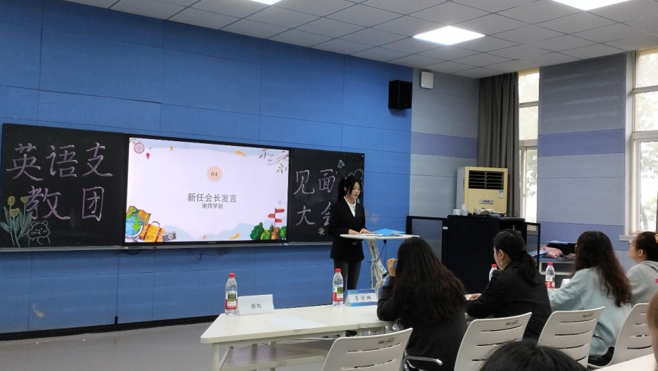 2025年10月29日,英语支教团2025-2026学年换届大会在宏识楼7407教室顺利举行。指导教师陈琳、李佳琳、社团学生干部及新老成员近50余人参会,会议由支教成员石晓满主持。