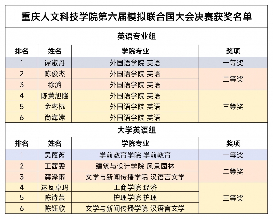 最后,主持人宣布重庆人文科技学院第六届模拟联合国大会(校内英文会场)圆满结束,全场鼓掌并合影。本次大会以“提升英语能力、培养国际视野与社会责任感”为核心,通过模拟外交体验融合英语学习与全球议题探讨,助力学生成长,也为校园文化注入活力。未来外语协会将继续开展此类活动,为学生搭建实践平台。