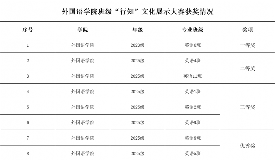 历经初赛的激烈角逐,共 8 个班级成功晋级决赛。决赛分为班级行知文化展示和节目表演两个环节,各参赛班级围绕班规、班训、班歌、班徽、制度建设、实践活动等方面系统呈现班级建设成果,并通过合唱、配音秀、话剧等多种节目表演形式集中展示班级文化特色。整体表现主题鲜明、形式多样,充分展现了学院班级文化建设的深度与活力。经过比拼,2023 级 6 班荣获本次大赛一等奖。