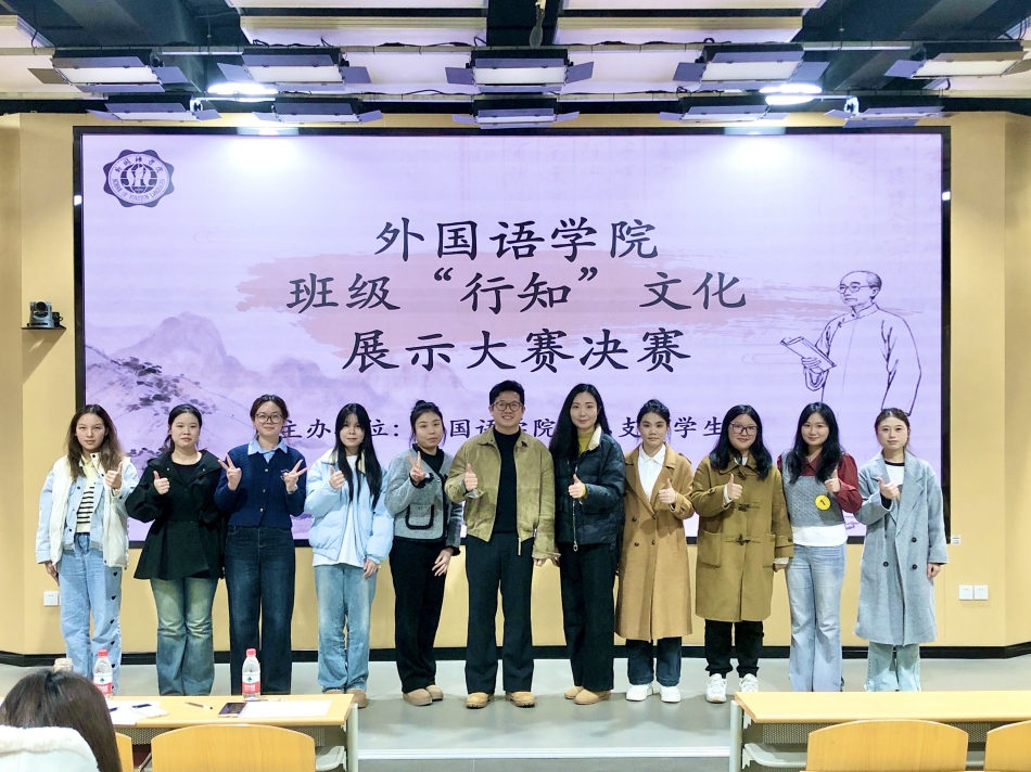 为践行“行知”文化和“厚德笃行,求真创造”校训精神,推进我院班级文化建设,11月26日18:10,外国语学院于宏识楼7208报告厅顺利开展班级“行知”文化展示大赛决赛。学院党总支副书记李巍、团总支书记郭晶、专业教师陈泓茜、辅导员郑梦寒担任本次比赛评委,现场90余名学生参加。